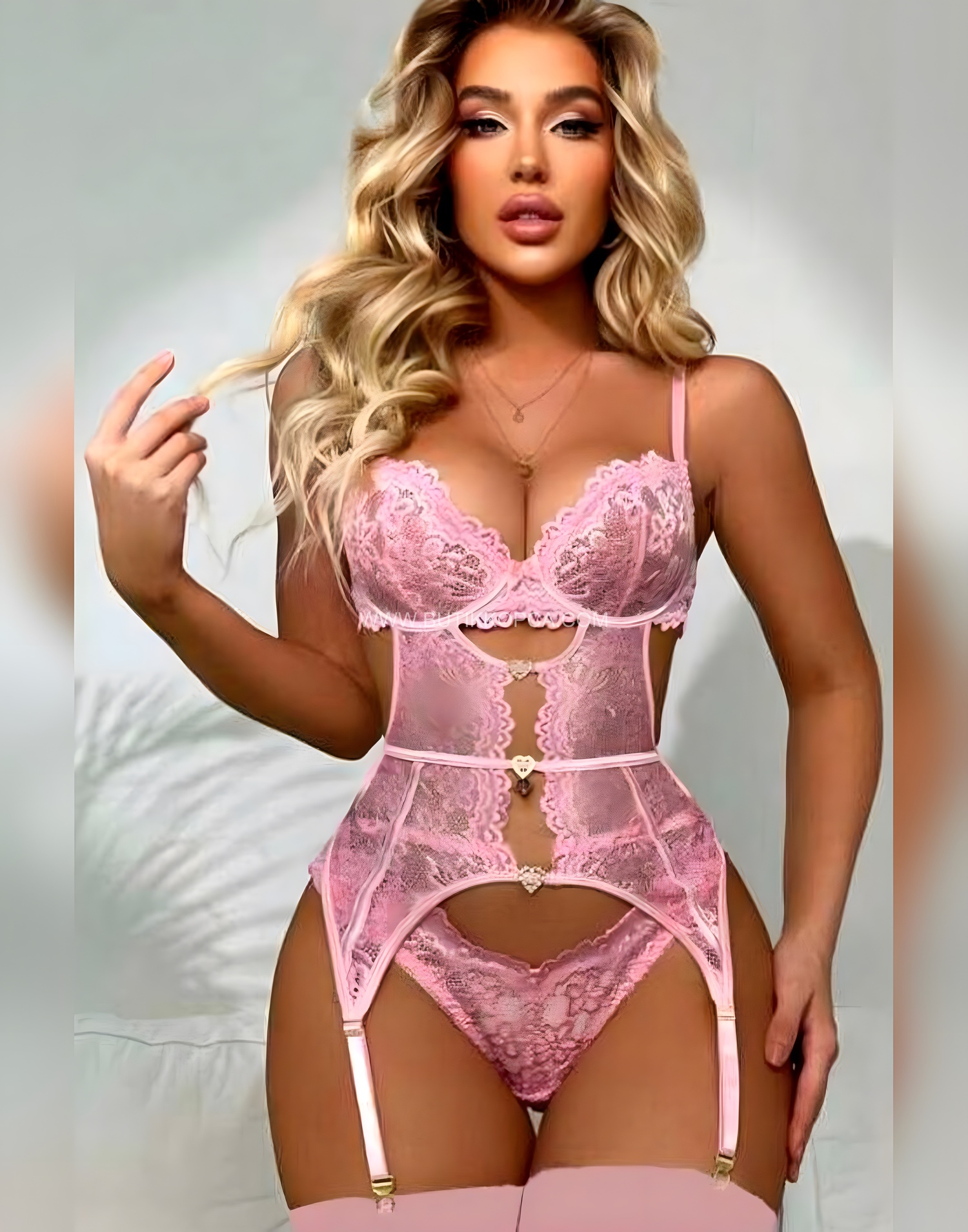 8465 kodlu **Fantezi Göz Alıcı Dantelli Desenli Tüllü Jartiyer Kombin Seti Pembe**, modern ve dikkat çekici tasarıma sahiptir.