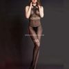 Gül Desenli Fileli Vücut Çorabı Siyah