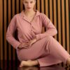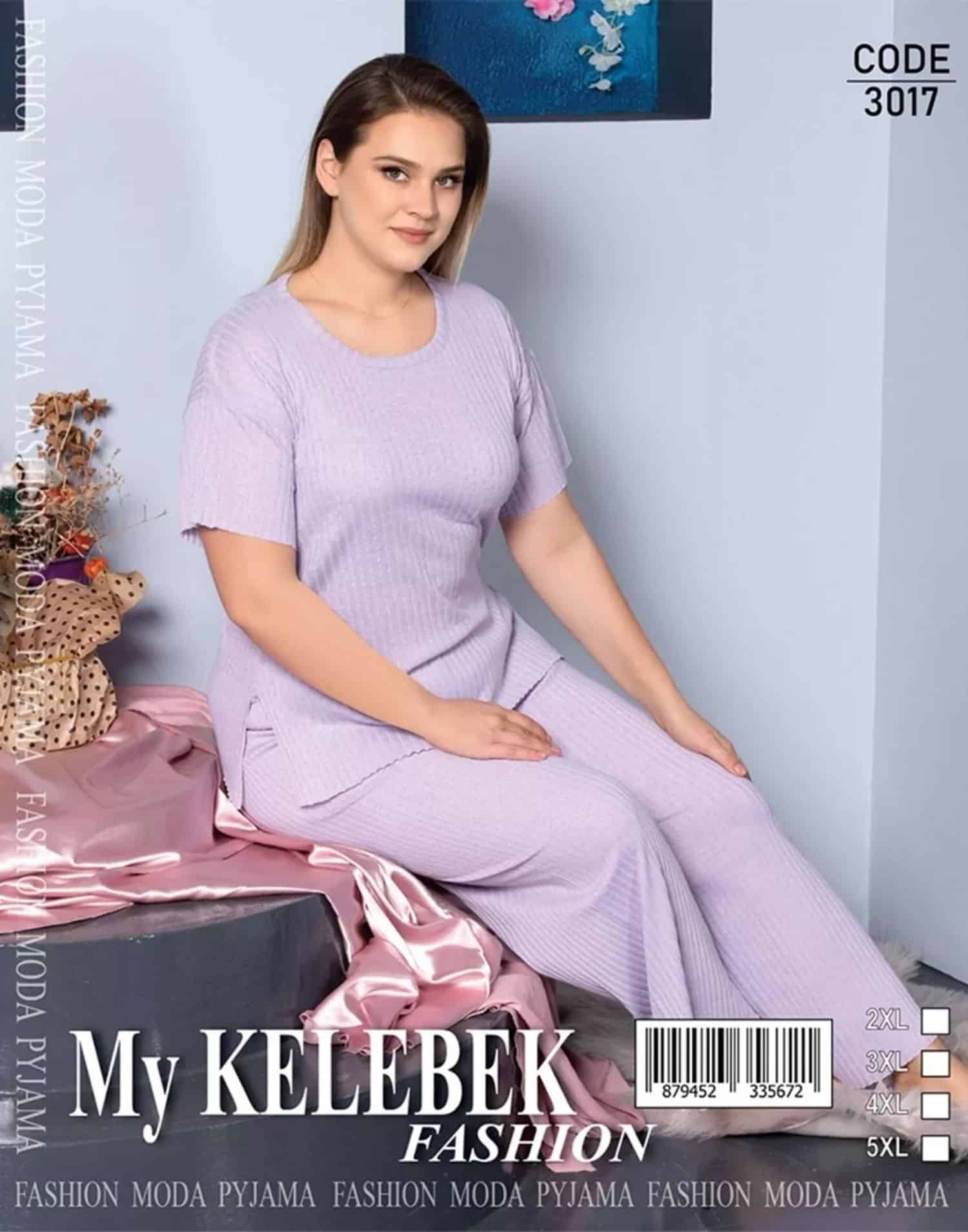 Pijama Takımı Raporlu Kısa Kol Büyük Beden Lila